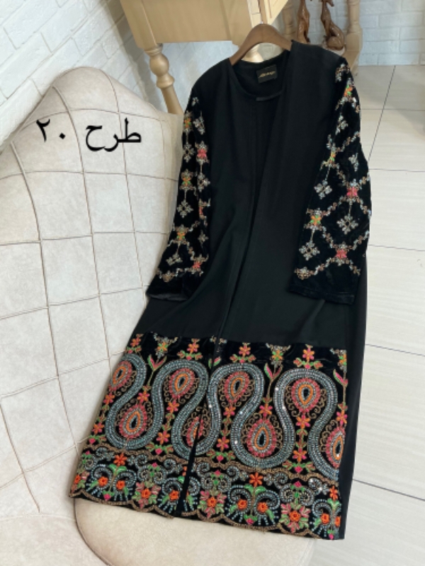 طرح٢٠ مانتو مروی ج اعلا ترکیب با مخمل سوزندوزی دور باسن تا ١٢٠ بازو ۴١ قد ١١٨-١٢٠
