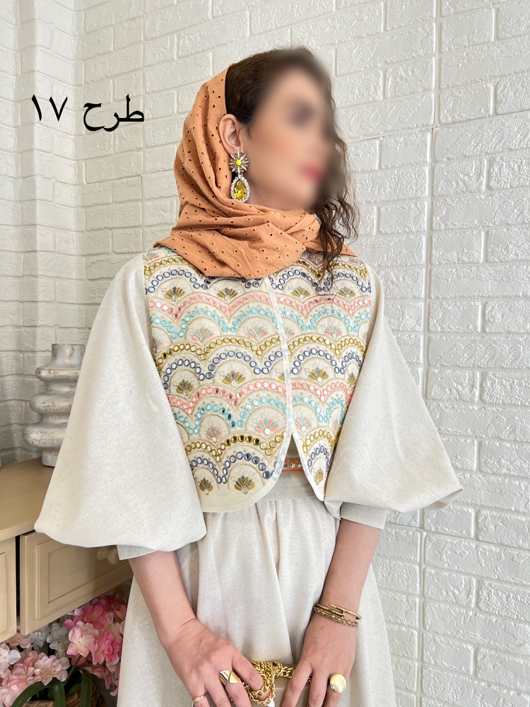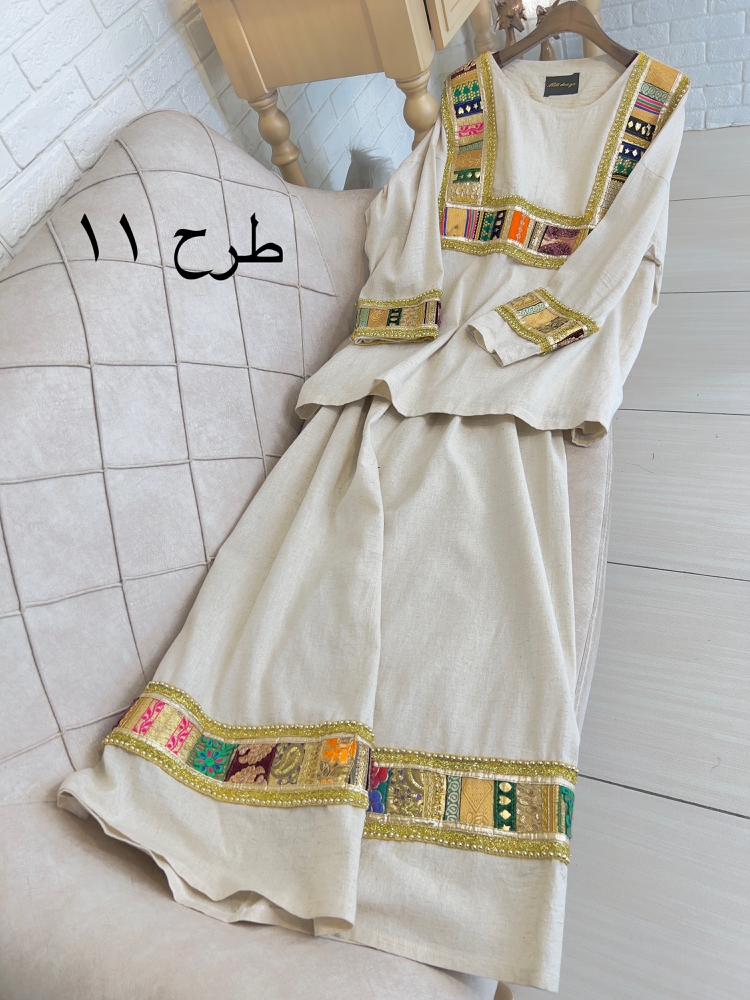 طرح ١١ بلوز دامن لینن یراق چهل تیکه هندی دامن ٩٠ بلوز ۶۵-٧٠ فی تا دور سینه ١٢٠ دامن گشادی تا ١۴٠