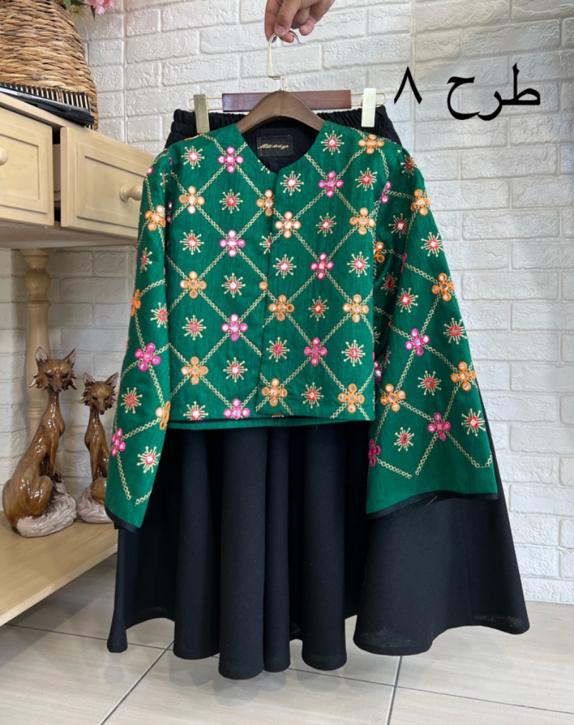 طرح ١۴ کت دامن لینن سوزندوزی قد کراپ ۵٠ دامن٩٠ فری تا ۴۴