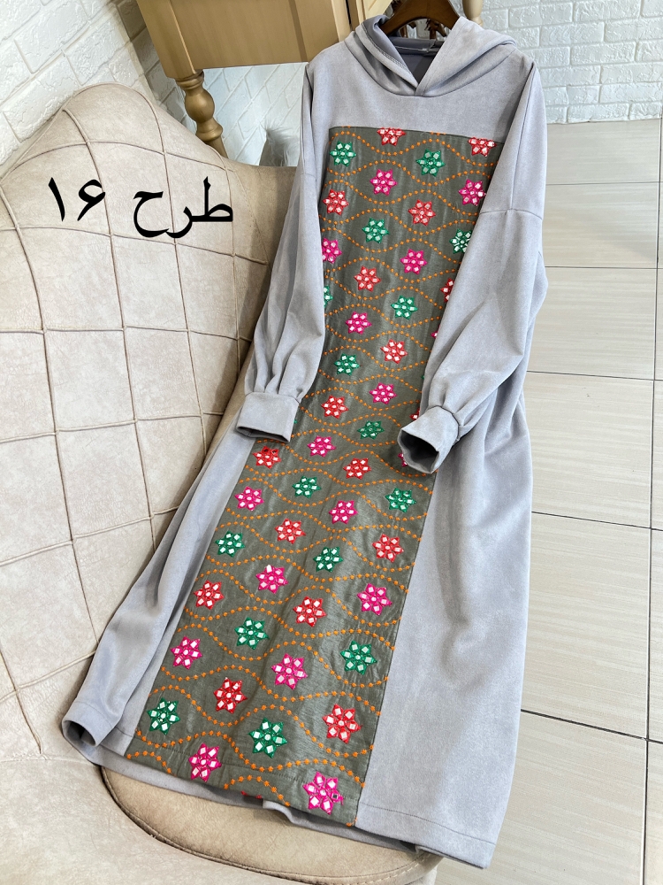 طرح ١۶ جنس زمستونی سوییت سوزندوزی کاملا گرم قد ١٢۵ کلاه داره دور باسن تا ١٣٠