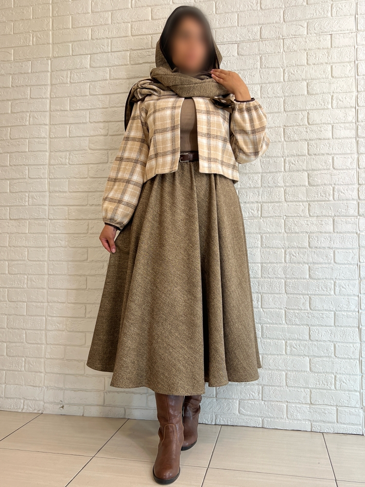 فری تا ۴۴ دور سینه ١٠۶ بازو ۴١ جنس دامن کشمیر توییت لمه دار
