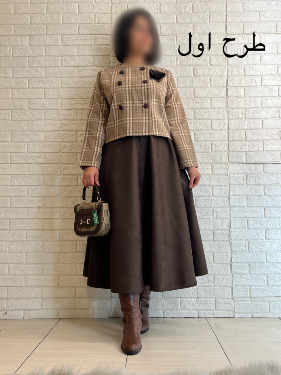جنس پارچه کت پشمی فری تا ۴۴ دور سینه تا ١٠۶ بازو ۴٠ قد کت ۵٠-۵۴ دامن قد ٩٠ جنس سوییت جیر فری سایز