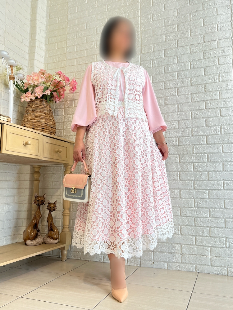ست شامل دامن بلوز و ژیله هست جنس پارچه ها گیپور گرم بالا و کرپ فری تا ۴۶ دور سینه تا ١٠٨ بازو ۴٢ مچ ٢۶ قد دامن ٩٠-٩۵ قد ژیله ۴٨ -۵٠ قد بلوز ۶٠-۶۵